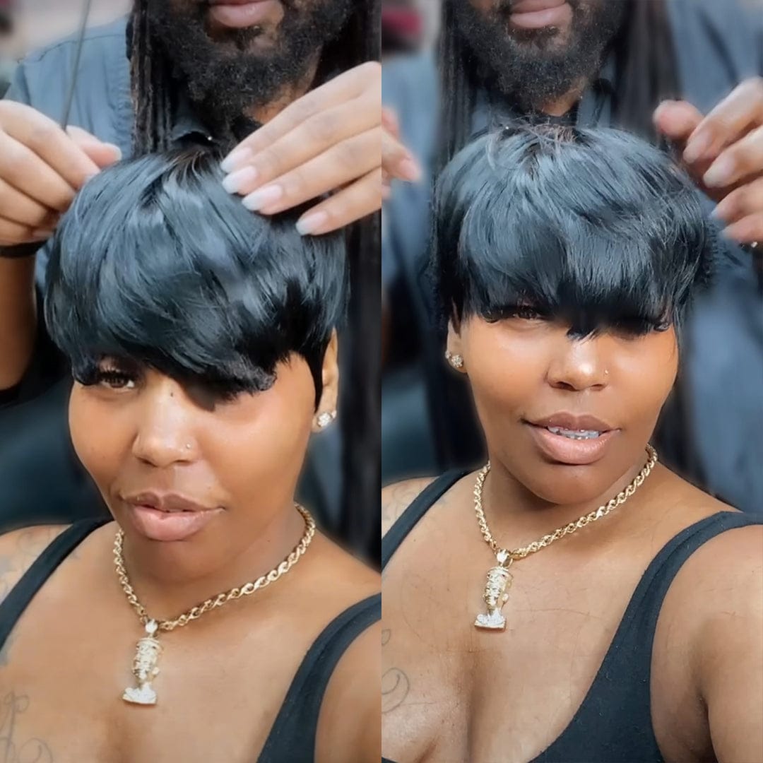 AILUXY 2 Perruques=€59 !! Sans Colle Perruque SY Bob Avec Frange Afro Naturelle Style et Perruque Bob Avec Frange Afro Couleur miel blond en 100% Cheveux Humains