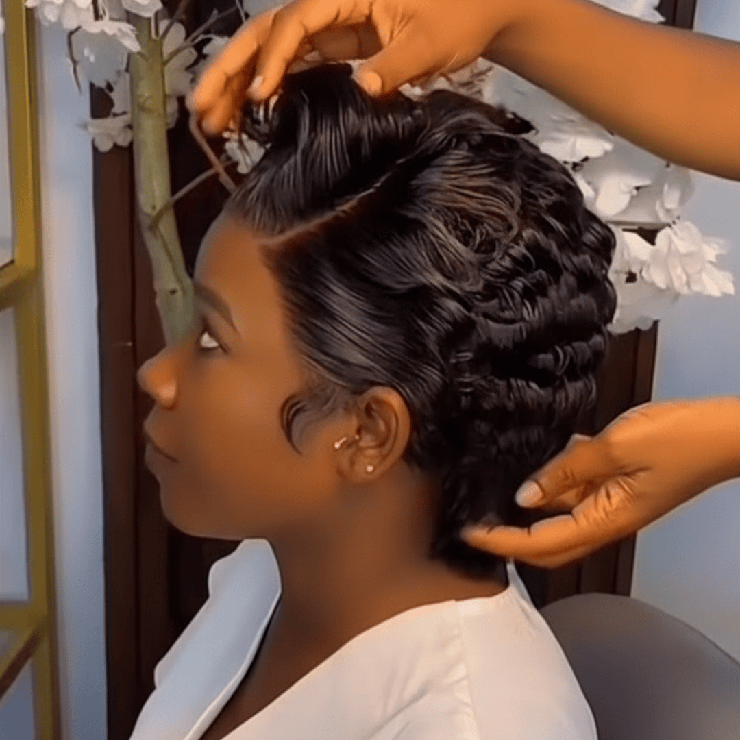 AILUXY Perruque Pixie 13x4 Lace Frontal Bouclé Noir - Conception Sans Colle