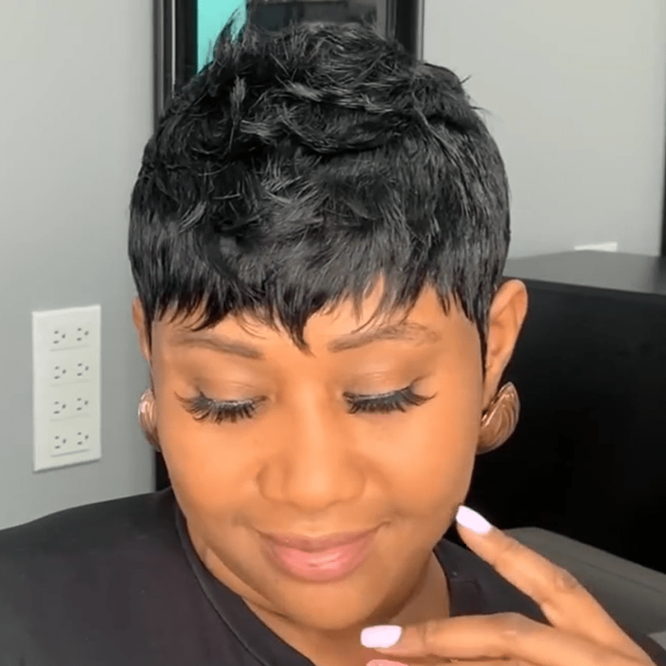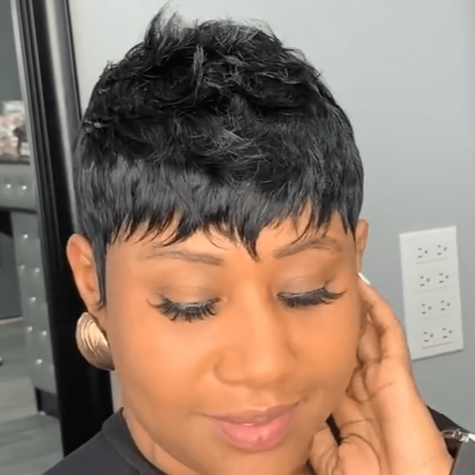AILUXY Perruque PIXIE à coupe effilée fabriquée à la machine