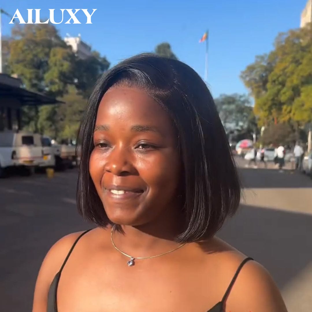 AILUXY Perruque 13x4 Lace BOB Perruques Frontal Sans Colle 100% Cheveux Humains