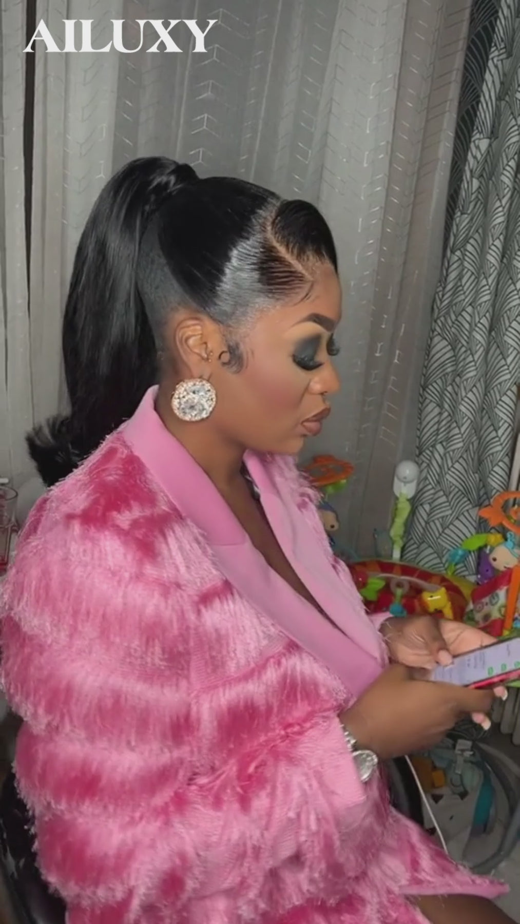 AILUXY Perruque Lace Front Queue de Cheval Haute - Lisse, Glamour et Réglable