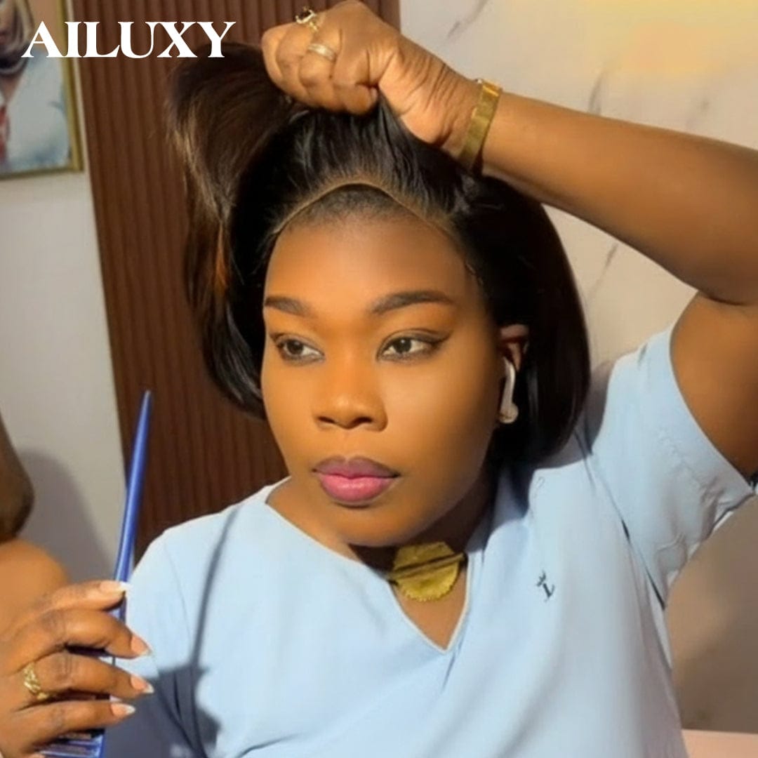 AILUXY Perruques Haute Qualité Lisse Sans Colle 100% Cheveux Humains